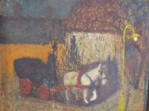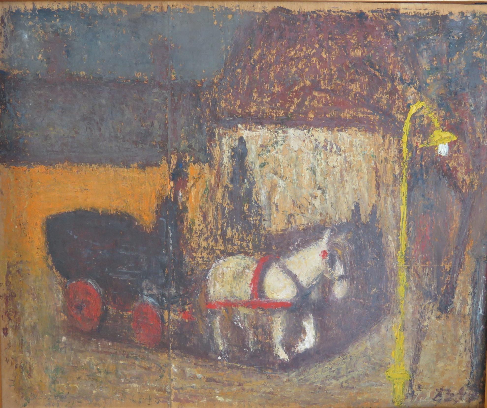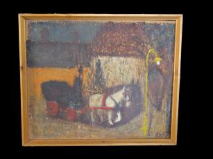 Bár művészetében 1947 és 1949 között érezhető valamilyenféle elbizonytalanodás is az útkeresés mellett, mindhárom alkotásban felfedezhetőek már művészetének jellegzetes stílusjegyei. A Nyíregyházi fiákeres szűk kivágású kép, színei esti órát sugallnak. A képen egy fehér, lábát emelő lovacska halad az éjszakában. Mozgásban van ugyan a fiáker, a ló emeli lábát, de mégis a lassúság, a komótosság árad felénk. A fiáker mozog a célja felé, de nem siet, a fiákeres arcának részleteit nem látjuk. Valahol egy kisváros közepén lehet, talán egy templomfal vagy nagyobb épület előtt, melyen egyaránt látszik a ló és a fiákeres árnyéka. Az egész a kisvárosi mindennapok egyhangú, nyugodt hangulatát sugallja. Bár már ezen a képen is látszik, hogy a művész szeret széles ecsetvonásokkal és viszonylag kevés színnel dolgozni, itt a központban lévő fehér ló piros hámja, a fiáker piros kerekei és az utat szegélyező, a kép jobboldalán elénk tolakodó sárga, hórihorgas, fehér körtéjű lámpa azért színessé, melegebbé, meghittebbé teszi a látványt, enyhít valamit a szűk kivágás okozta bezártság érzetén. A fiáker hátsó, fekete része belerajzolódik egy narancssárgás, talán tégla házfalba, melynek fekete teteje összeolvad a nagyon sötét, szintén feketébe hajló éggel, de ez a háttér, a szemlélő nem erre figyel, hanem azt várja, hogy elhaladjon előtte is a lassan, egykedvűen lépkedő piros hámos fehér lovacska. Ez az 1947-es kép már felvillantja a küldetéses parasztfestő egyedi szimbolikáját, ugyanakkor megőriz valamit az újvidéki évek fiatal, társaságot kedvelő, női portrékat festő alkotóból is.