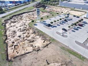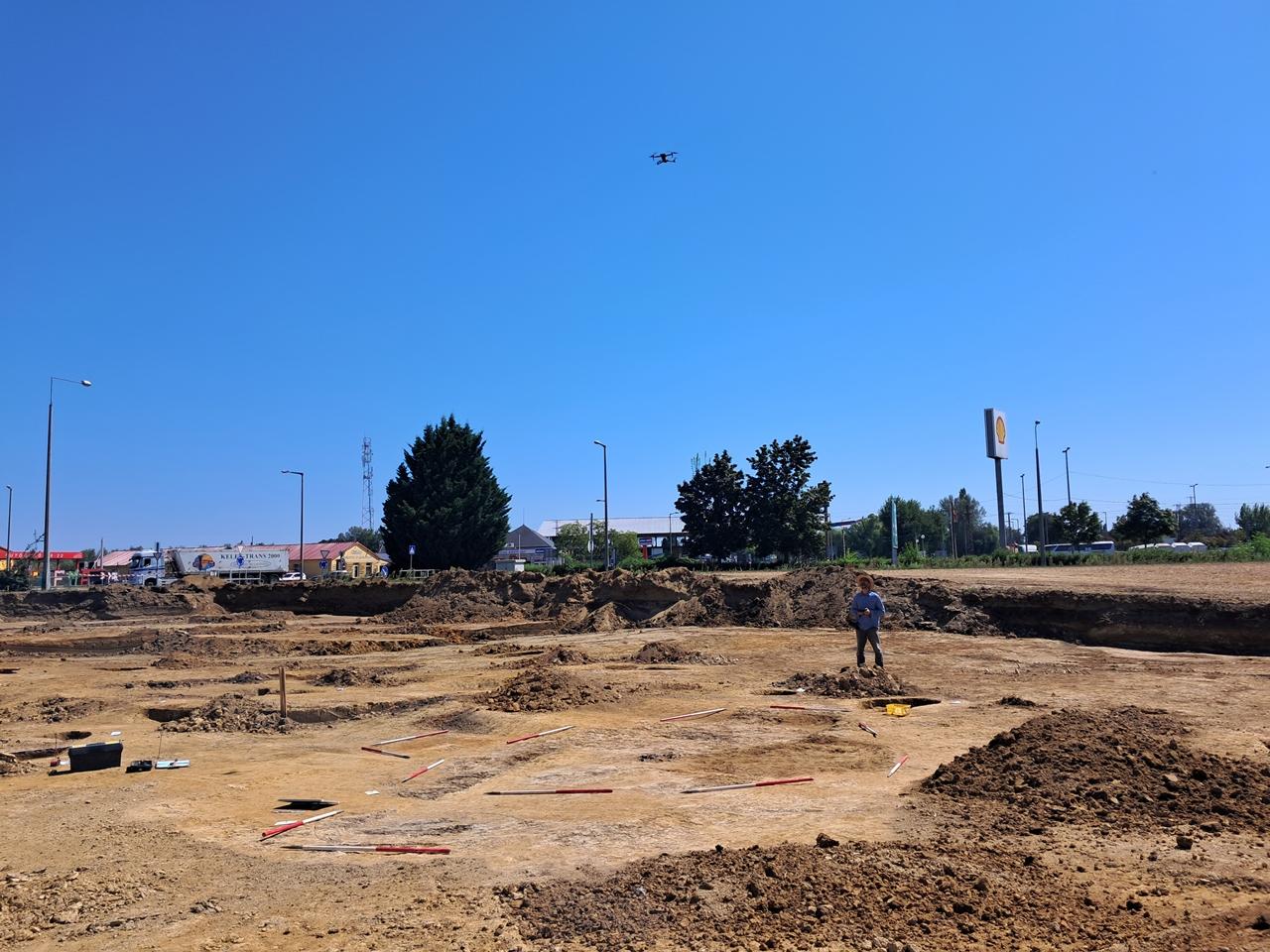 A terület feltárása már korábban, 2021-ben elkezdődött, amikor a kereskedelmi központ 1. üteméhez kapcsolódóan végeztünk régészeti kutatásokat. Az akkori megelőző feltárás eredményei alapján arra számítottunk, hogy a megismert települési jelenségek folytatódnak majd a 2. ütem területén is. Elvárásaink beigazolódtak, így a közel 1 hektár nagyságú feltárási területen egy újkőkori, középső neolitikus (Kr.e. 5500/5400 – 5000/4900), egy késő bronzkori és egy Kr.u. 6 – 7. századi település nyomaira bukkantunk.