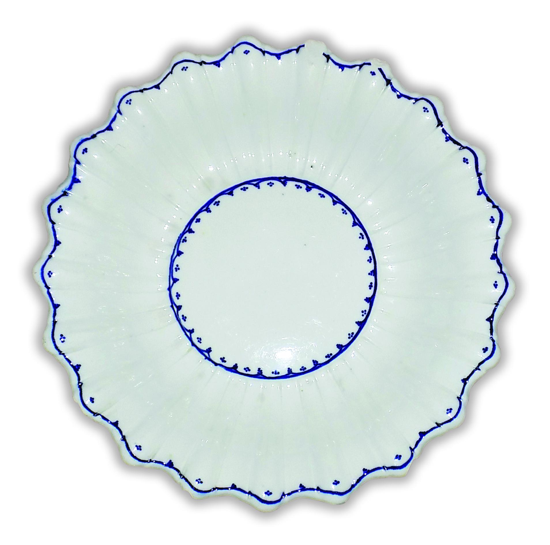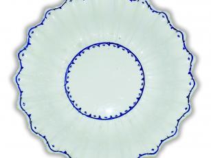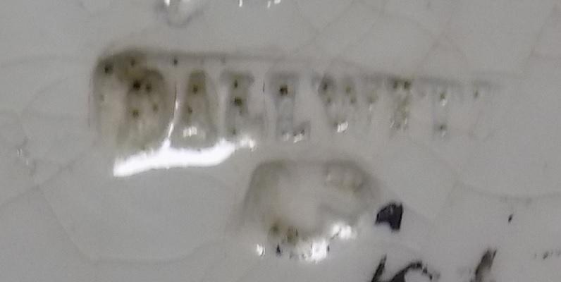 Ez a cakkos szélű, 22 cm átmérőjű süteményestál az egykori Karlsbadtól (ma Karlovy Vary Csehországban) északkeletre fekvő Dallwitzban (ma Dalvice), az 1804-ben Johann Bitter von Schönau alapította keménycserépgyárban készült – a hátuljába benyomott név írásmódja alapján – az 1840-es években. Az 1805-től a „Császári és Királyi Privilégizált Kőedénygyár” címet viselő üzem többször kísérletezett a porcelán előállításával is, és ennek kapcsán érdekességként megemlíthető, hogy a dallwitzi gyárban 1806–1820 között Goethe, az ismert német költő is vizsgálhatta a kvarchomok hő hatására bekövetkezett állapotváltozásait. Ezután a gyakori tulajdonos- és névváltozáson átment üzem egészen 1918-ig hol csak keménycserepet, hol pedig porcelánt is gyártva élte meg a birodalom szétesését, végül sorsa a megalakult Csehszlovákiában hasonló lett a történelem cikk-cakkjait szintén megélő stara role-i (Altrohlau) és znojmoi (Znaim) üzemekéhez, a század második felében államosították.