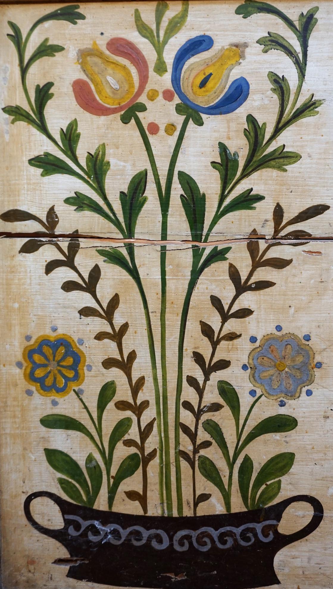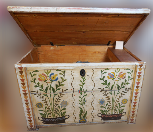 Gyűjteményünk egyik legkülönlegesebb tulipános ládájának leírását Bodnár Zsuzsanna etnográfustól idézzük: